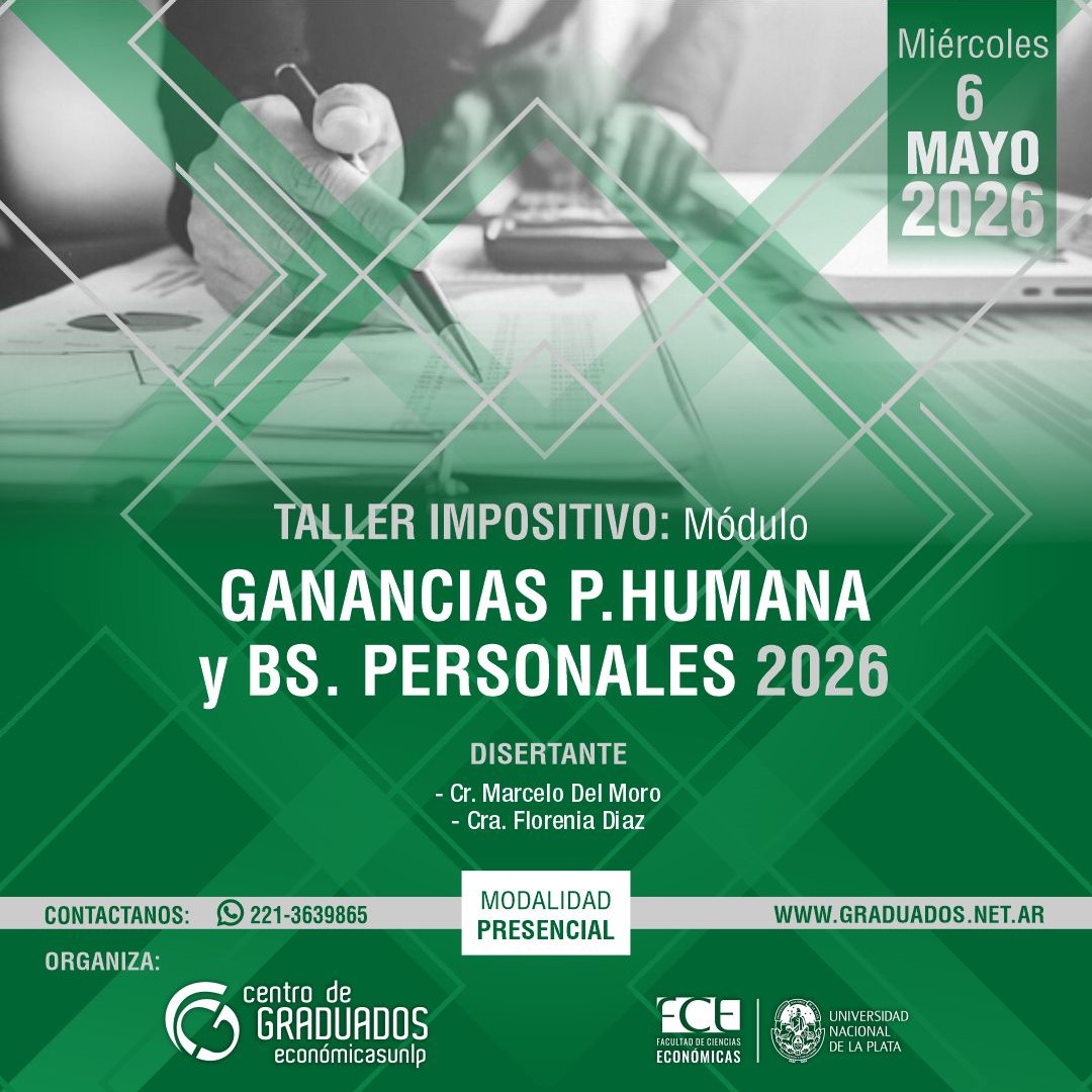 ![[06/05] Taller impositivo: Módulo Ganancias Persona Humana y Bs. Personales](https://graduados.net.ar/wp-content/uploads/2026/04/GANANCIAS-MURO.jpg)