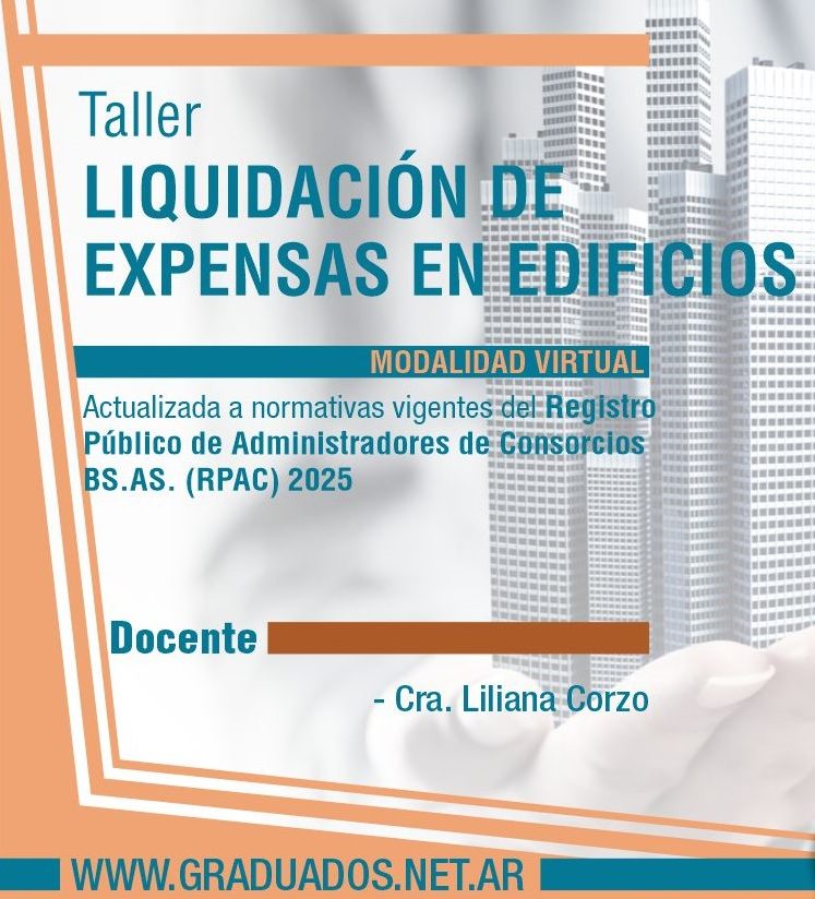 El taller se encuentra a fin de formar a alumnos en el marco legal y toda la normativa que acompaña a liquidación de expensas propiamente dicha en la propiedad horizontal y la administración de consorcios.